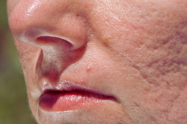 - Deeper marks on the cheeks or temples beneath the skin are disrupted.